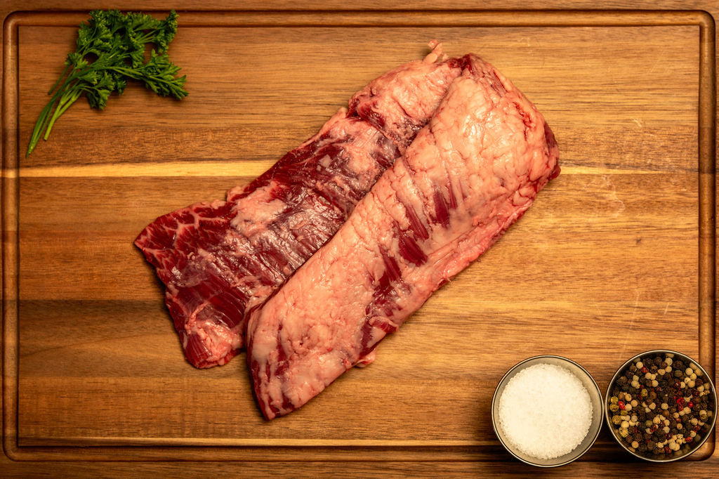 Our high-quality Skirt Steak is made from Angus beef, known for its exceptional tenderness and rich flavor. The unique cut of skirt steak boasts a marbling score of over 60%, making it a top choice among chefs and meat lovers alike. Enjoy the succulent taste and melt-in-your-mouth texture of our premium beef product.