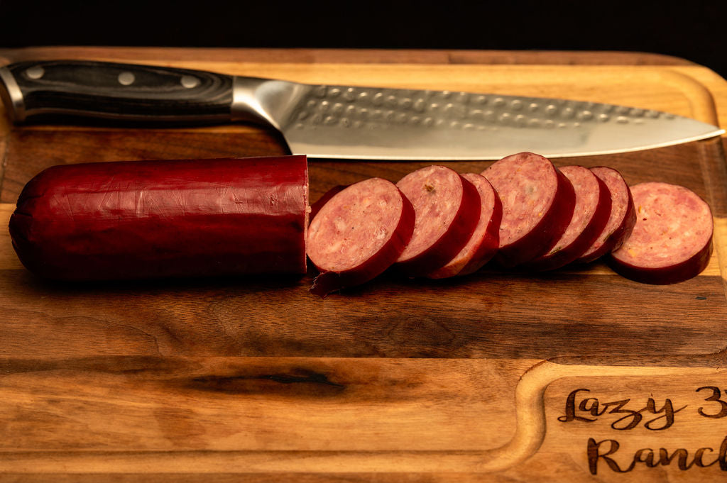 Indulge in the savory taste of our Original and Jalapeno Cheddar Beef Summer Sausage. Made with high-quality beef and blended with traditional spices, our summer sausage is perfect for snacking, charcuterie boards, and picnics. Try both flavors for a delicious and convenient protein-packed treat.