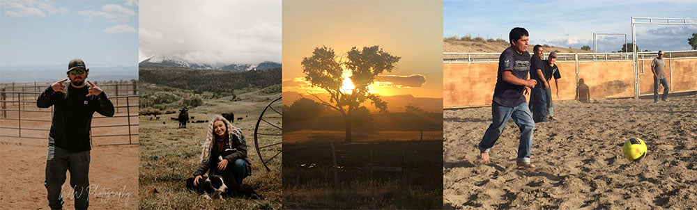 Our Merino sheep spend their summers in the high country tended by skilled shepherds, herding border collies, and livestock guardian dogs. They provide the sheep fresh green grass and brush and protect them from predators. When the winter moves in, the sheep move to the desert where they graze the last season's grass and desert brush. The lambs intended for processing are finished in dry lots on our ranch, with raised hay and grain.